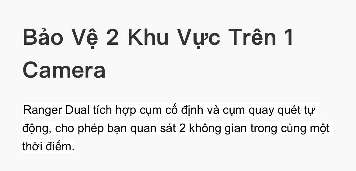 – Góc nhìn rộng: Một mắt camera cố định góc rộng 5MP, một mắt quay 350 độ 5MP giúp bao quát toàn bộ khu vực cần giám sát.