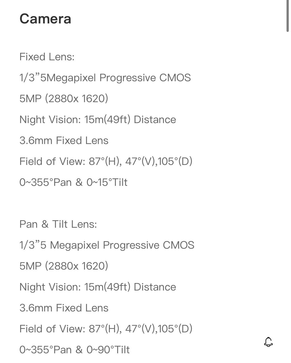 Độ phân giải | 10MP (2880 × 1620 px) (5.0 MP ống kính cố định; 5.0 MP ống kính quay quét) |