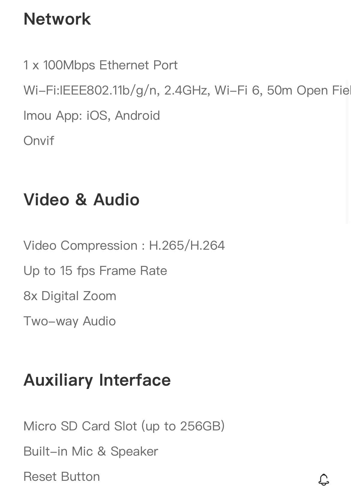 Tính năng | Đàm thoại 2 chiều Phát hiện chuyển động Phát hiện con người Phát hiện thú cưng Vùng có thể định cấu hình Báo động âm thanh bất thường Báo động chủ động bằng còi và đèn Chế độ riêng tư Smart tracking Thu phóng kỹ thuật số 8x Chống ngược sáng HDR 4 chế độ ban đêm |