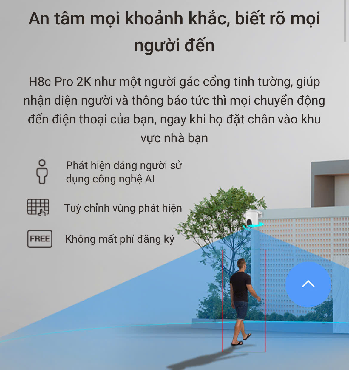 Tóm lại, Camera Ezviz H8C Pro với góc quay 360 độ và độ phân giải 3 MP mang lại khả năng quan sát rộng rãi và chi tiết. Được tích hợp tính năng phát hiện chuyển động, thiết bị nhanh chóng nhận diện các hoạt động đáng ngờ và gửi cảnh báo kịp thời.