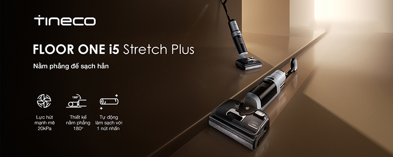 Máy lau sàn hút bụi Tineco Floor One i5 Stretch Plus sở hữu lực hút siêu mạnh 20.000Pa, mang lại hiệu năng làm sạch ấn tượng, dễ dàng xử lý mọi vết bẩn cứng đầu trên nhiều loại sàn khác nhau. Thiết kế ngả phẳng 180° với chiều cao chỉ 13cm, dễ dàng tiếp cận và làm sạch sâu các khu vực gầm thấp như gầm giường, tủ hay sofa,…. DualBlock giải quyết triệt để vấn đề lông tóc vướng víu, giúp việc dọn dẹp liền mạch hơn. Máy hút bụi i5 Stretch Plus được trang bị hệ thống làm sạch chổi lau liên tục, tối ưu hóa hiệu quả làm sạch và tiết kiệm năng lượng. Dung tích bình chứa nước lớn, bạn có thể làm sạch lâu hơn và thay nước ít hơn. Khả năng làm sạch 2 cạnh giúp dễ dàng vệ sinh dọc theo chân tường, không bỏ sót bất kỳ góc nào. Việc tái định vị bình nước sạch và khớp nối linh hoạt cho phép xoay và vặn thân máy 45° dễ dàng, nâng cao sự tiện lợi khi sử dụng. Pin dung lượng lớn, thời gian làm việc lên đến 30 phút sau khi sạc đầy.
