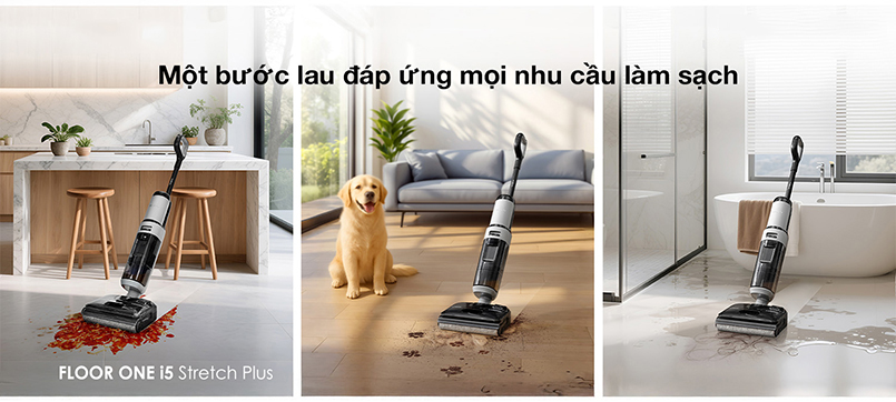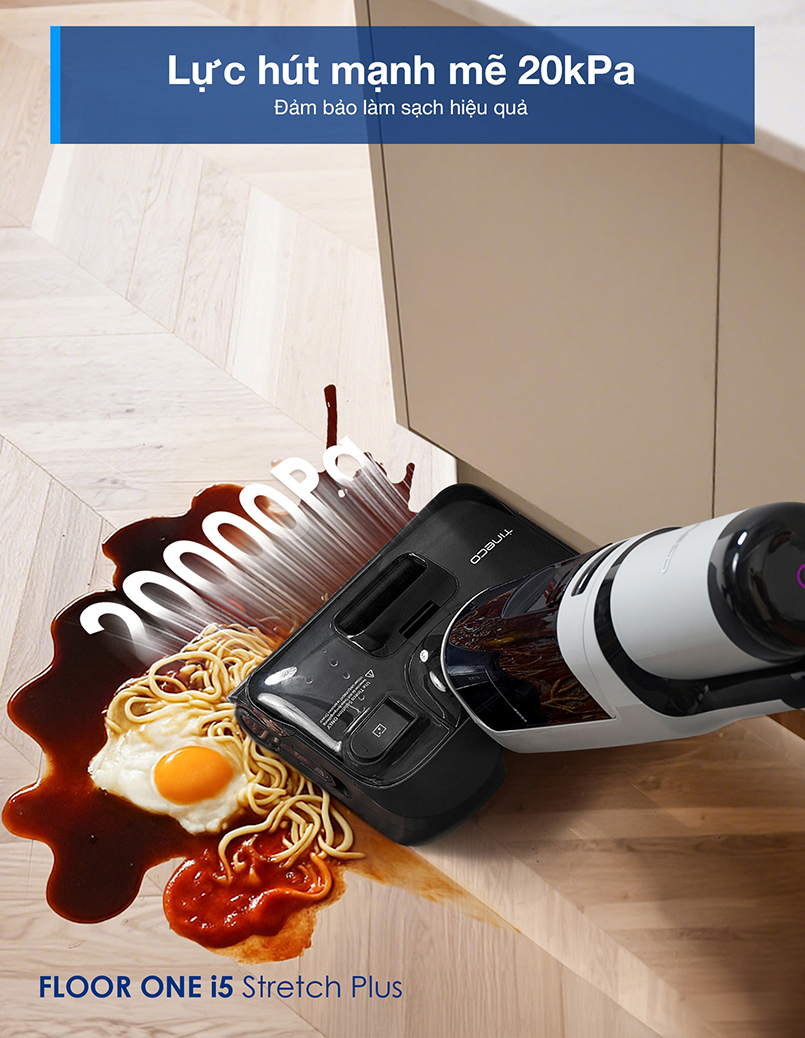 Với lực hút khủng 20.000Pa, Tineco i5 Stretch Plus biến việc dọn dẹp nhà cửa trở nên cực kỳ đơn giản. Dù là bụi bẩn cứng đầu, mảnh vụn, tóc, lông thú cưng hay các vết bẩn ướt, máy đều đảm bảo xử lý nhanh chóng và gọn gàng, trả lại sàn nhà sạch bong chỉ trong tích tắc.