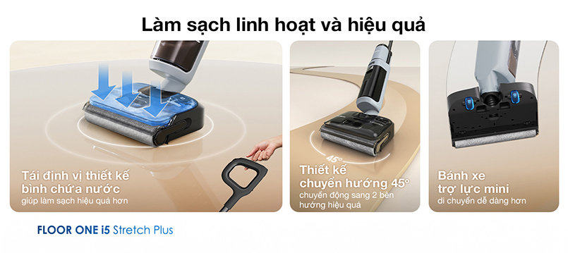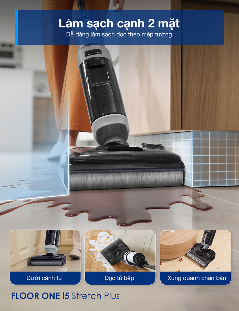 Máy lau sàn hút bụi Tineco i5 Stretch Plus thiết kế con lăn làm sạch 2 cạnh
