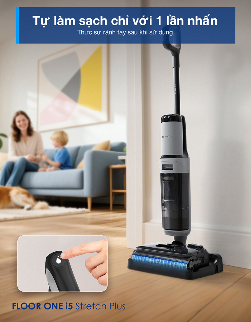 Sau khi sử dụng máy lau sàn hút bụi Tineco Floor One i5 Stretch Plus, bạn chỉ cần một thao tác nhấn nút để kích hoạt chế độ tự động làm sạch, loại bỏ hoàn toàn việc vệ sinh thủ công phức tạp. Điều này đảm bảo thiết bị luôn sẵn sàng cho lần sử dụng tiếp theo một cách tiện lợi và vệ sinh.