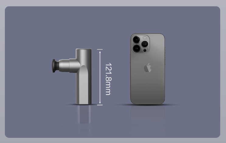 Về thiết kế, Súng massage mini Momoda có kết cấu vô cùng nhẹ và nhỏ gọn. Thân máy có khối lượng chỉ 260g, cao 121.8mm nên người dùng có thể thoải mái sử dụng, cầm nắm bằng một tay trong thời gian dài.