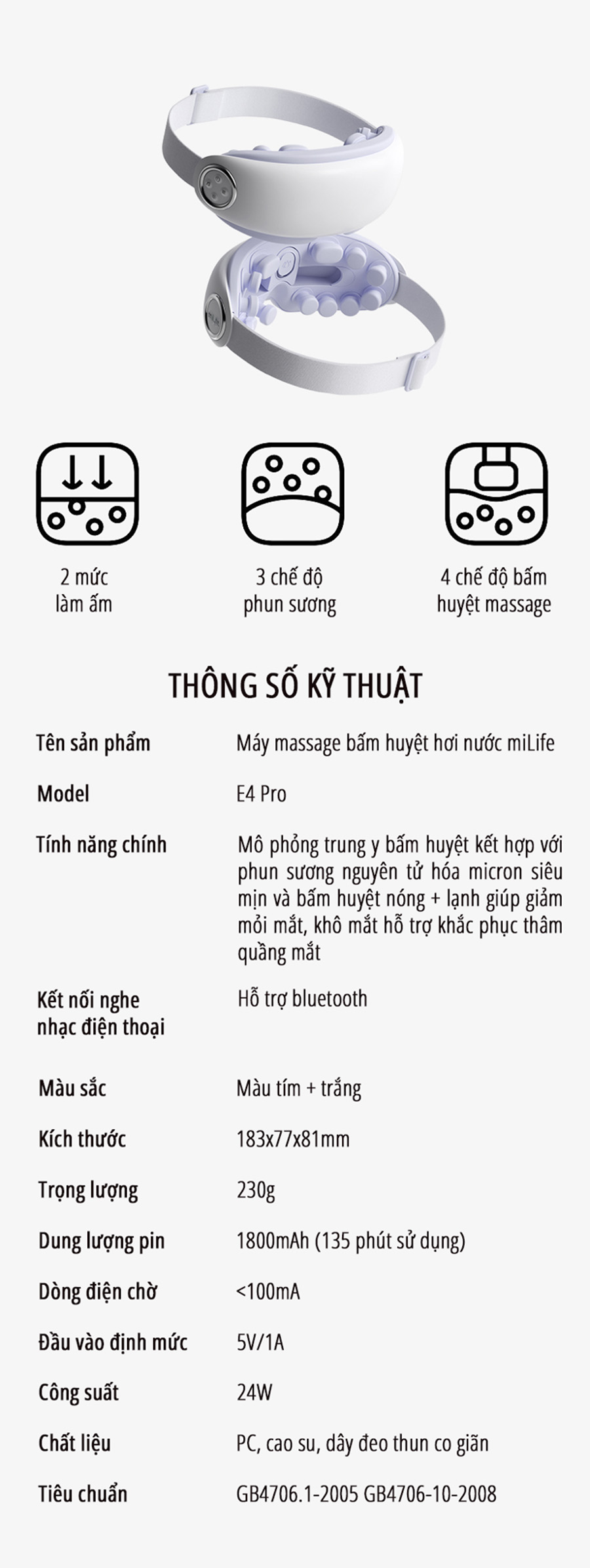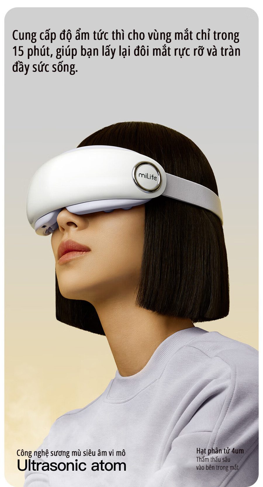 Máy massage mắt bấm huyệt, phun sương chườm ấm Mi Life E4 Pro