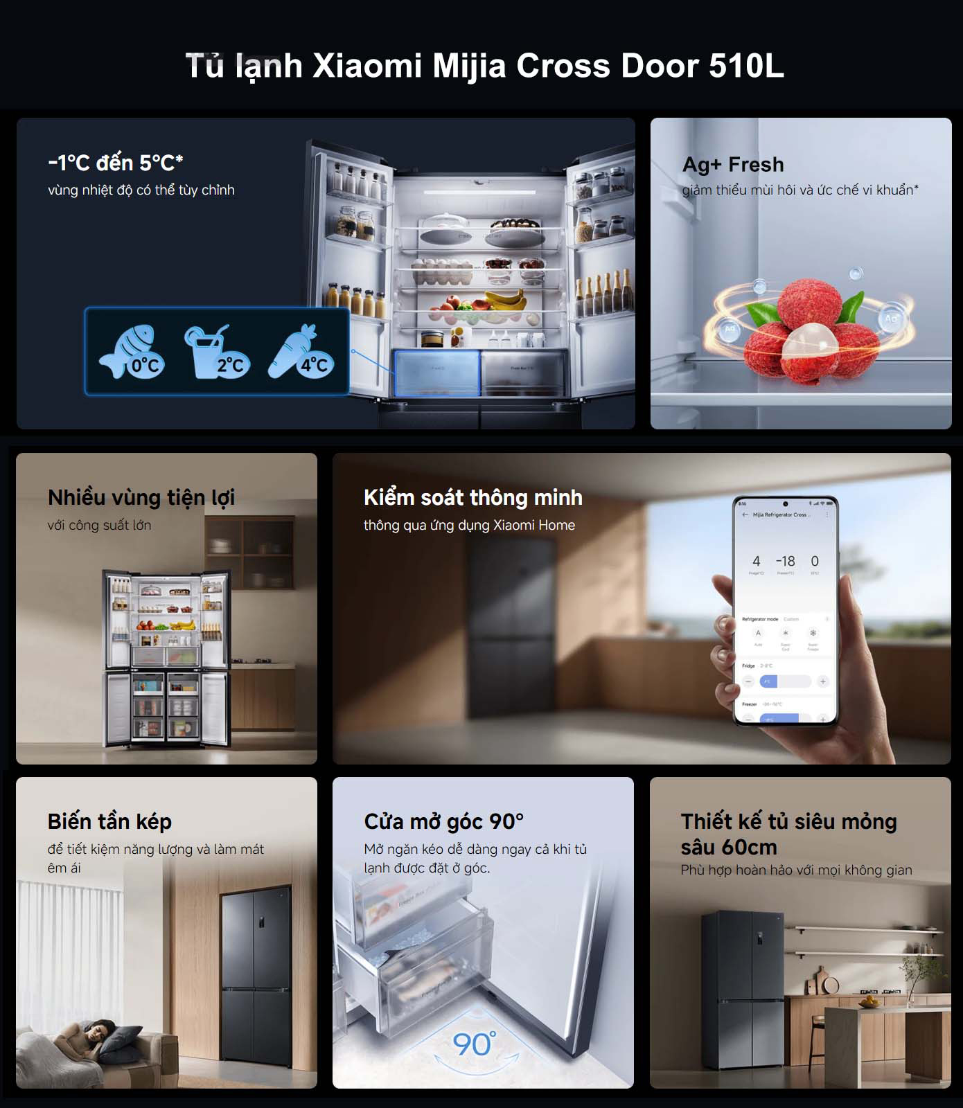 | Tên sản phẩm | Tủ lạnh Xiaomi Mijia Cross Door 510L |